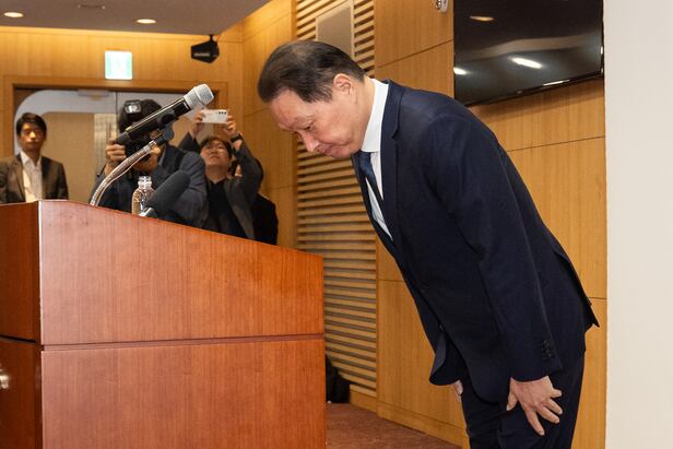 최 회장은 이날 오전 서울 종로구 SK서린사옥에서 열린 재판 현안 관련 설명 자리에 직접 등장해 "먼저 개인적인 일로 국민께 걱정과 심려를 끼쳐 드린 점 사과드린다"며 허리를 굽혀 90도로 인사했다.