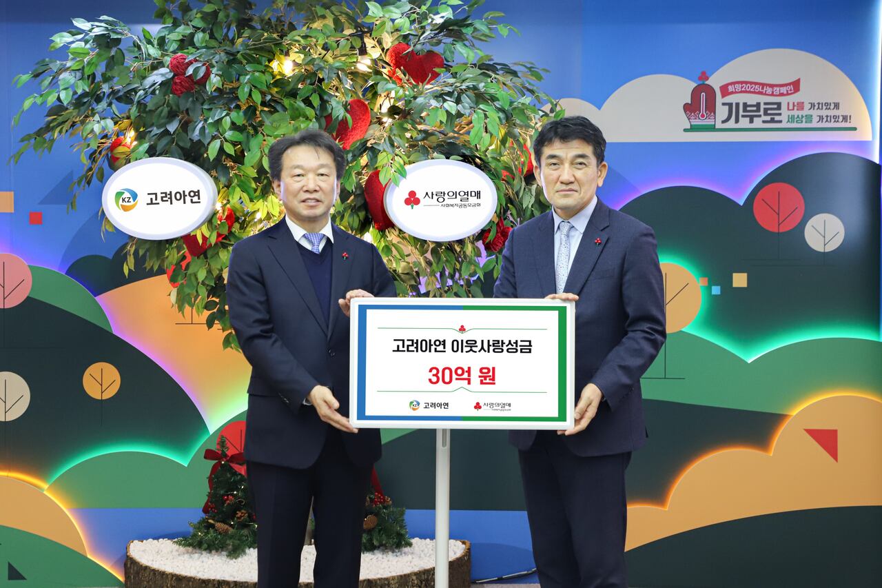 고려아연(010130)이 사랑의열매 사회복지공동모금회에 이웃사랑 성금 30억원을 기탁했다.