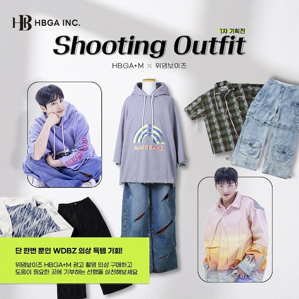 3세대통합플랫폼사 HBGA는 자사 온라인 쇼핑몰 HBGA+M의 광고모델 위댐보이즈(WE DEM BOYZ)가 지난 8월 촬영한 HBGA+M 광고 촬영 의상을 오는 13일 판매할 예정이다.