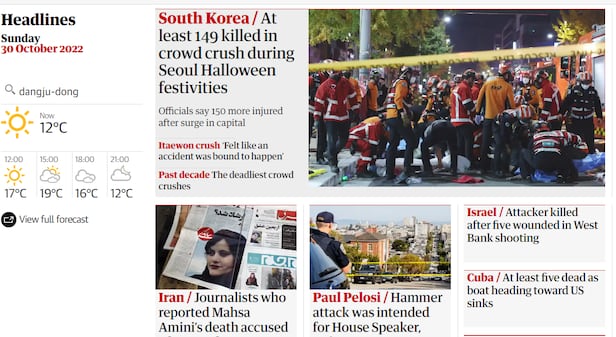 특히 가디언지는 이태원 참사 현장 목격자를 인용해 "토요일 이태원에는 유난히 붐볐으며 인파에 휘말려 그저 밀려다니는 사람들이 너무 많았다"며 "사고가 일어날 수 밖에 없는 상황이었다"고 전했다.
