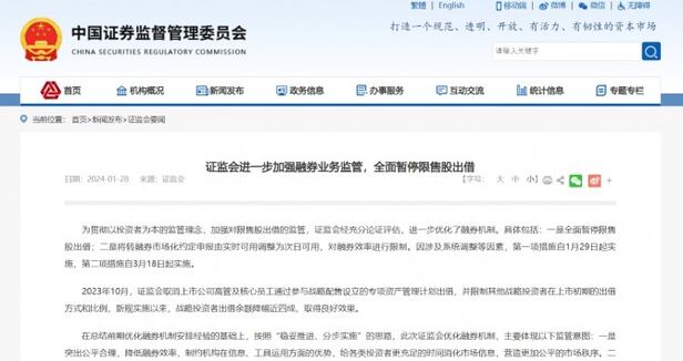 28일 로이터 통신에 따르면 중국증권감독관리위원회(CSRC·증감회)는 이날 중국 소셜미디어 위챗 계정을 통해 "공정성과 합리성을 강조하고 주식 대여의 효율성을 감소시키겠다"고 밝혔다.