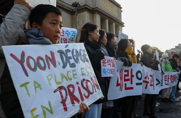 프랑스 파리에서 7일(현지 시각) 비상 계엄을 선포한 윤석열 대통령의 퇴진을 촉구하는 시위가 열렸다.