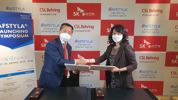 SK플라즈마는 씨에스엘베링 코리아 혈우병 신약 앱스틸라(성분명 로녹토코그알파)를 국내에서 독점 판매한다고 25일 밝혔다.