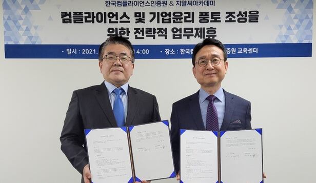 한국컴플라이언스인증원(KCCA)과 지알씨아카데미(GRCA)가 지난 22일 준법 경영(컴플라이언스) 및 건전한 기업윤리 문화확산을 위한 업무협약(MOU)을 체결했다고 26일 KCCA가 밝혔다.