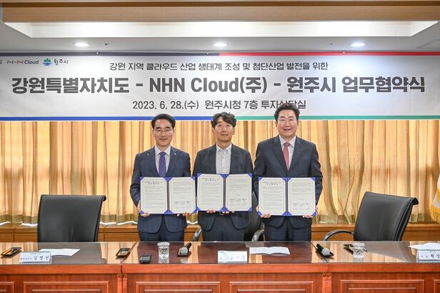 NHN클라우드가 강원특별자치도, 원주시와 업무 협약(MOU)을 체결하고 클라우드 전환과 지역 특화 디지털헬스케어 연구개발을 추진한다.