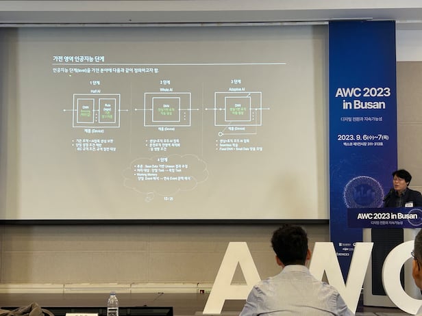 김락용 LG전자 H&A본부 연구위원은 7일 오전 부산 해운대구 벡스코 제1전시장서 열린 'AWC 2023 in 부산' 강연자로 참석해 "AI가 가전 산업에 혁신을 가져올 것"이라고 말했다.