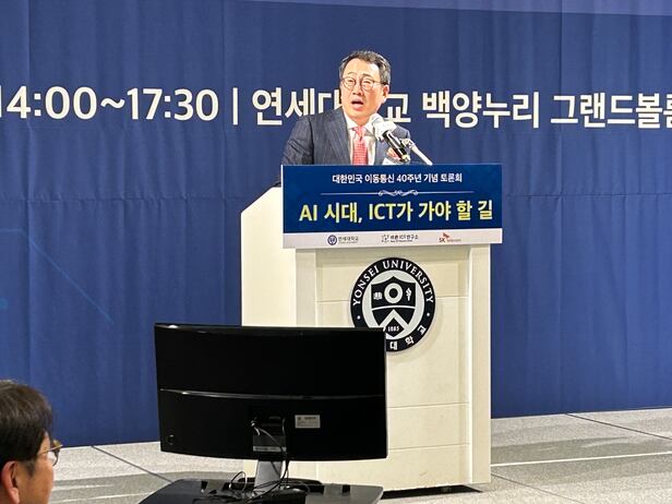 유영상 SK텔레콤 사장은 5일 오후 서울 서대문구 연세대 백양누리 그랜드볼룸에서 열린 '대한민국 이동통신 40주년 기념 토론회'에서 "이동통신은 지난 40년간 국민의 삶을 전면적으로 바꿨고 대한민국 IT(정보기술) 산업 발전에 크게 기여했다"라며 "40년 역사를 뒤로 하고 새롭게 직면한 AI 시대엔 마치 전기가 20세기 경제와 일상을 통째로 바꾼 것처럼 AI가 21세기 산업과 생활을 전면적으로 혁신할 것"이라고 했다.