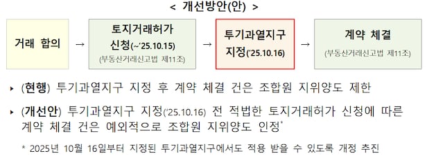 国土交通部が10・15不動産対策による投機過熱地区指定前に適法に取引許可を申請し契約が締結された場合、例外的に組合員地位の譲渡を認めることにした。