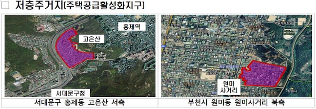 이중 서울 서대문구 후보지는 홍제동 고운산 서쪽의 저층주거지다. 지난 2013년 4월 정비예정구역에서 해제된 이후 장기간 개발이 정체된 지역이다. 문재인 대통령이 취임하기 전까지 살았던 홍은동 사저에서 직선거리로 1㎞ 떨어져 있는 곳이기도 하다. 국토부는 이 곳에 2975세대 규모의 단지를 조성하고 지역개방형 문화·체육·생활 사회간접자본(SOC) 공급을 통해 서대문구의 새로운 주거지역으로 정비한다는 구상이다.