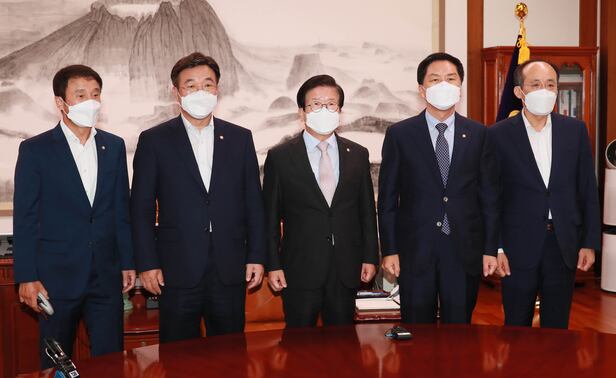더불어민주당 윤호중 원내대표와 국민의힘 김기현 원내대표는 이날 오전 국회에서 박병석 국회의장 주재로 만나 약 1시간 동안 논의한 끝에 이같은 방안에 합의했다. 전날 네 차례 회동에 이은 다섯 번째 만남에서 겨우 접점을 찾았다.