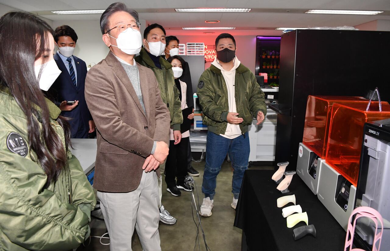 이재명 더불어민주당 대선 후보가 30일 청년 창업가들을 만나 벤처기업과 스타트업에 대한 자본 투자를 활성화해야 한다는 목소리를 청취했다.