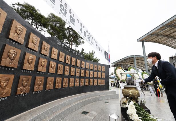 이 대표는 "천안함 용사를 추모하러 올 때마다 마음이 무겁다"며 "동년배이기 때문에 항상 이들이 못다 이룬 꿈을 이루기 위해 정치를 하겠다고 다짐한다"고 말했다.