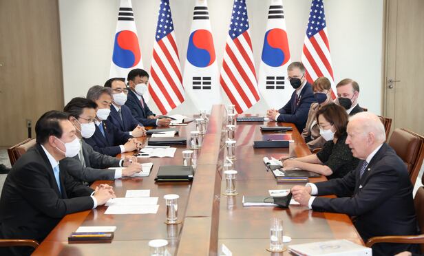 윤석열 대통령과 조 바이든 미 대통령의 소인수 회담이 예정시간을 40여분 넘겨 72분간 진행됐다.