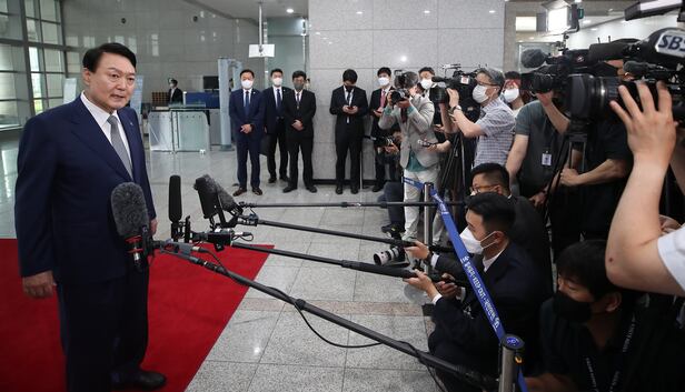 ─대통령님 어제 그 김승희·박순애·김승겸 후보자 청문회 재송부 했는데요, 혹시 나토 다녀오신 뒤에도 국회 원 구성이 되지 않으면 임명을 좀 하실 계획인지.