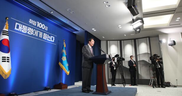윤 대통령은 이날 오전 용산 대통령실 청사 1층 브리핑룸에서 진행한 취임 100일 기자회견 모두발언에서 "국정을 운영하는 데 있어 가장 중요한 건 첫째도 국민의 뜻, 둘째도 국민의 뜻"이라며 이같이 말했다.
