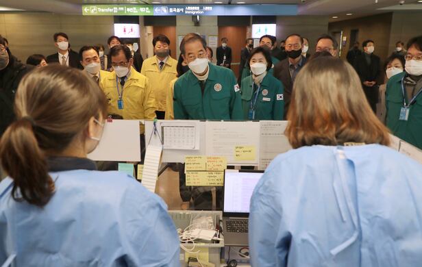 한 총리는 최종희 인천공항검역소장으로부터 검역 대응 상황을 보고받고 검역대와 입국장, PCR 검사센터와 대기 장소 등을 점검했다.