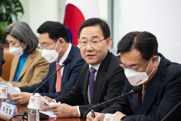 주호영 국민의힘 원내대표가 27일 더불어민주당이 30조원 규모의 추가경정예산(추경)을 편성해야 한다고 주장하는 것에 대해 "5년동안 무책임하게 국정을 운영해서 국민들에게 1000조원을 넘는 빚 안겨준 것도 모자라 또다시 추경해서 돈 뿌리자고 한다"며 "일말의 책임감과 양심이 있다면 또다시 빚을 내서 재정을 풀자는 주장은 하지 말라"고 했다.