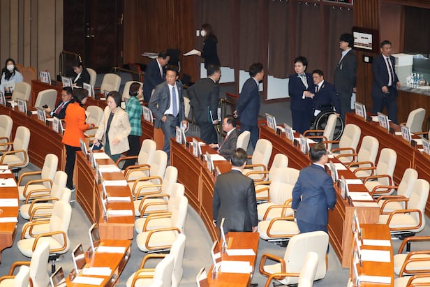 국민의힘은 반대 토론을 한 뒤 본회의장에서 퇴장, 표결에 불참했다. 국민의힘은 지난 14일 헌법재판소에 권한쟁의 심판과 효력정지 가처분 신청을 내기도 했다.