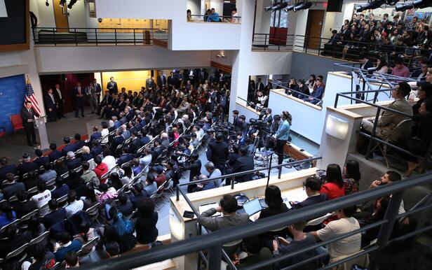28일(현지 시각) 하버드대에서 질문과 답변