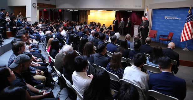 28일(현지 시각) 하버드대에서 질문과 답변