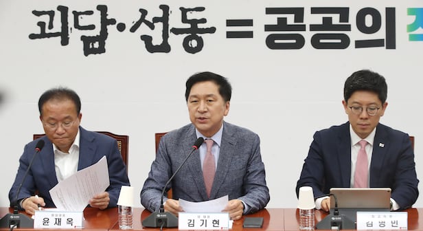 김 대표는 "노태악 선관위원장의 사퇴촉구와 감사원 감사 요구에 대해 민주당은 독립기관 흔들기라며 선관위 두둔하고 있다"며 "선관위와 민주당이 이해관계가 맞아떨어진 것 아닌지 합리적 의심을 가질 수밖에 없다"고 말했다.