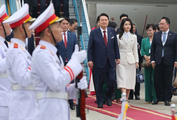 윤석열 대통령과 김건희 여사가 22일(현지 시각) 오전 2박 3일 국빈 방문 일정을 소화하기 위해 베트남 하노이에 도착했다. 이번 국빈 방문 일정에는 지난해 5월 윤석열 정부 출범 후 최대 규모인 205명의 경제사절단이 동행한다. 양국은 정상회담 등을 통해 기존 제조업에서 금융과 문화 콘텐츠, 정보기술(IT) 등 서비스업 분야로 경제협력을 확대할 전망이다.