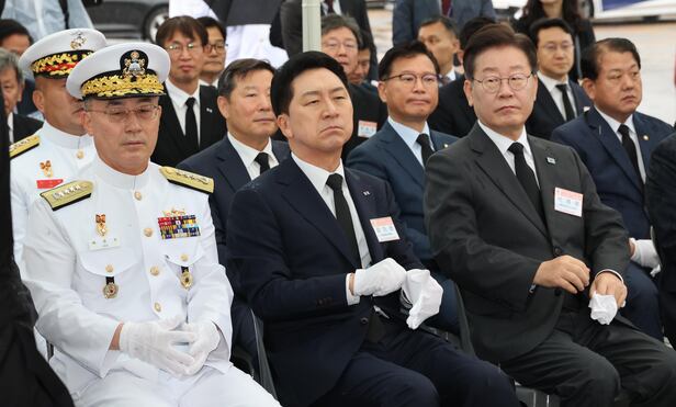 여야 대표는 29일 제2연평해전 승전 21주년 기념식에 나란히 참석했다. 여야는 전사자들의 명복을 기리고 희생을 잊지 않겠다고 밝혔다.
