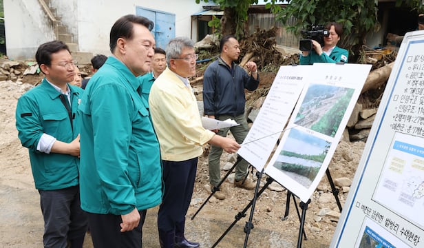 윤 대통령은 "지금 집중호우가 계속되는 상황이고 제일 중요한 것은 인명피해를 막고, 최소화하는 것"이라며 "국민의 안전을 담당하는 공무원들은 집중호우가 올 때 사무실에 앉아만 있지 말고 현장에 나가서 상황을 둘러보고 미리미리 대처해 달라"고 강조했다.