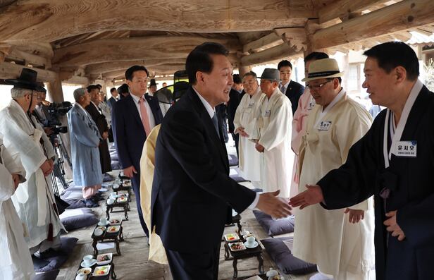 대통령실은 "윤 대통령과 유림들은 지방시대 실현을 위한 퇴계 서원 운동의 정신 구현, 갈등과 반목의 극복을 위한 선비정신, 국민 행복을 위한 인성교육의 확대 필요성에 대해 이야기를 나눴다"며 "지역 발전과 전통문화 창달에 대한 의지를 다졌다"고 전했다.