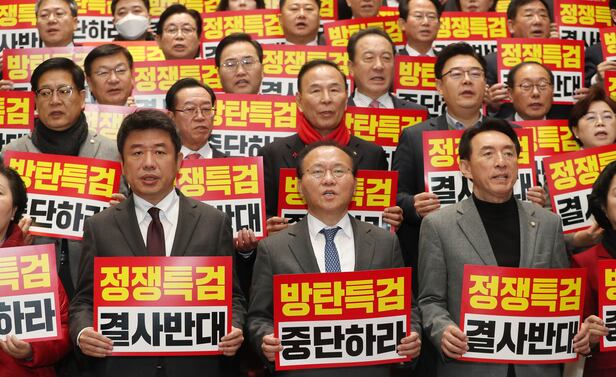 조경태 의원도 규탄사를 통해 "민주당은 선거 때마다 공작 정치를 일삼아 왔다. 이번에도 특검 공작을 통해 자신들의 정치적 이득을 취하려는 것"이라며 "국민 여러분, 공작 정치 전문 정당, 카르텔 범죄 옹호 정당인 민주당에 더 이상 속지 말고 내년 총선에서 반드시 심판해달라"고 호소했다.