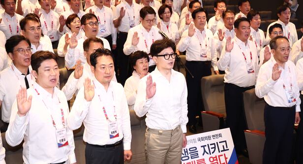 국민의힘이 30일 국회의원 연찬회에서 '연금·의료‧교육‧노동개혁 이행'을 골자로 한 결의문을 채택했다. 의료개혁에 따른 의정 갈등이 당정 갈등으로 비화하자, 내부 결속을 다지자는 의도다. 한동훈 대표가 '의대정원 증원 유예'를 제안했다가 대통령실과 대립한 시점과 맞물린다. 그러나 정작 당내에선 추석 연휴 '응급실 대란' 우려와 정부의 경직된 태도에 대한 비토가 나왔다.