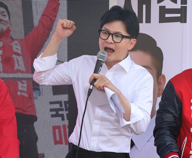 이날 서울 도봉구 현장에는 당원·지지자, 시민 등 약 100명이 모였다. 이들은 '김재섭'과 '김선동' 등 국민의힘 도봉구 후보 이름을 연호했다. 약 20분 후 한 위원장이 유세차량에 오르자, 이들은 모두 "한동훈"을 외치고 박수를 쳤다. 한 위원장도 연호하는 소리에 화답하듯 김재섭·김선동 후보의 손을 잡고 만세를 한 뒤 시민들을 향해 인사를 하기도 했다.