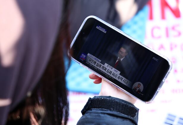 이날 용산 대통령실 청사는 토요일임에도 불구하고 오전부터 분주하고 긴박하게 돌아가고 있는 상황이다. 앞서 대통령실은 이날 오전 9시 3분 "윤 대통령이 10시에 생중계로 대국민 담화를 진행한다"고 공지했다. 브리핑룸에는 정진석 비서실장을 포함한 일부 수석급 참모진이 배석한 것으로 알려졌다.