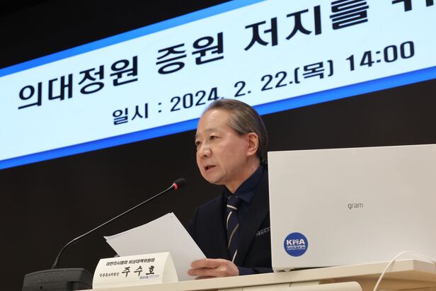 주수호 비대위 언론홍보위원장은 22일 두 번째 정례 브리핑을 열고 "보건복지부는 연구 결과 의대 2000명 증원에 근거가 있다고 주장했다"며 "하지만 이는 연구 결과를 자의적으로 해석한 것이고, 해당 연구를 제외하면 증원 논리를 뒷받침할 근거도 부족하다"고 말했다.