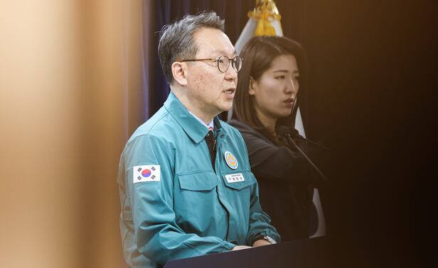 중앙사고수습본부 부본부장인 박민수 보건복지부 2차관이 26일 오전 서울 종로구 정부서울청사 별관에서 의사 집단행동 관련 중앙사고수습본부 브리핑에서 "동료 교수·전공의 등의 사직서 제출 강요, 현장 복귀를 방해하는 행위에 대해 '직장 내 괴롭힘' 해당여부 등을 확인하겠다"라고 말했다.