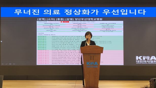 최안나 대한의사협회(의협) 대변인은 22일 서울 용산구 의협 회관에서 의료현안 관련 브리핑을 열고 서울 노원구 인제대 상계백병원과 경남 양산 부산대병원 응급실 현황을 공유하며 "대도시의 권역응급의료센터도 진료를 못하고 있는 상황인데 정부는 여전히 응급실 진료 차질이 일부 병원의 문제라며 국민을 속이고 있다"고 말했다.