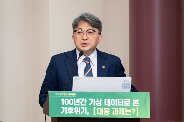 유희동 기상청장은 11일 서울 여의도 국회에서 열린 '제2회 국가현안 대토론회'에 발제자로 나서 기후위기 대응을 서둘러야 한다고 강조했다. 이날 대토론회는 '100년간 기상 데이터로 본 기후위기. 대응 과제는?'이라는 주제로 열렸다.