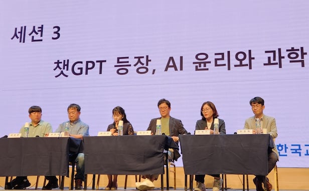 이날 세션은 '챗GPT의 등장, AI 미래와 윤리'라는 주제로 진행됐다. 대학 교수와 정부출연연구기관에서 일하는 AI 연구원, 과학 기자들이 모여 고도로 발달한 생성형 AI가 자리잡은 미래는 어떤 모습일지에 대해 이야기를 나눴다.