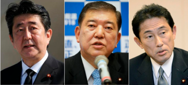 대중적인 지지 면에서 가장 앞선 후보는 이시바 시게루(石破茂) 전 자민당 간사장이다. 지난 10일 요미우리신문이 발표한 여론조사 결과에 따르면 이시바는 차기 총리에 걸맞은 정치인으로 24%의 지지율을 얻었고, 14일 지지통신 여론조사(24.6%)에서도 비슷한 결과를 얻어 주요 여론조사에서 1위 자리를 독식하고 있다. 아베 정권에 비교적 우호적인 산케이신문에서도 18.2%를 얻으며 12.2%를 얻은 아베 총리를 누르고 1위를 기록했다.