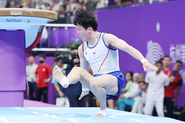 2020 도쿄 올림픽 체조 금메달리스트 신재환(25·제천시청)이 이번 아시안게임에서 기계체조 남자 도마 4위를 기록했다.