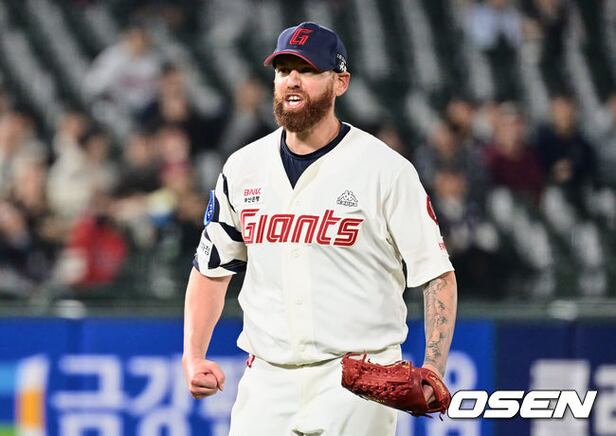 롯데 자이언츠 스트레일리가 6회초 두산 베어스 양찬열을 삼진으로 잡고 포효하고 있다. 2023.05.09 / foto0307@osen.co.kr