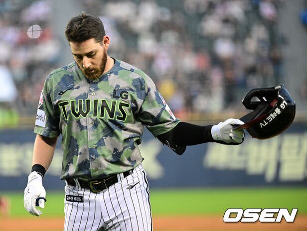 8회말 LG 오스틴이 중견수 플라이로 물러나며 아쉬워하고 있다. 2023.06.24 /jpnews@osen.co.kr