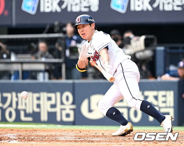 4회말 무사에서 두산 정수빈이 기습 번트를 시도하고 있다. 2023.08.15 /sunday@osen.co.kr