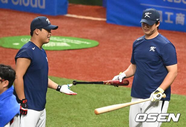 한국 대표팀 강백호가 노시환에게 배트를 받고 있다. 2023.09.30 / ksl0919@osen.co.kr