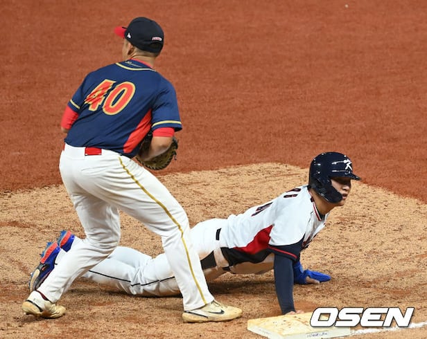 5회말 무사 1루 대한민국 윤동희 타석 때 1루 주자 문보경이 견제사 당하고 있다. 2023.10.01 / ksl0919@osen.co.kr