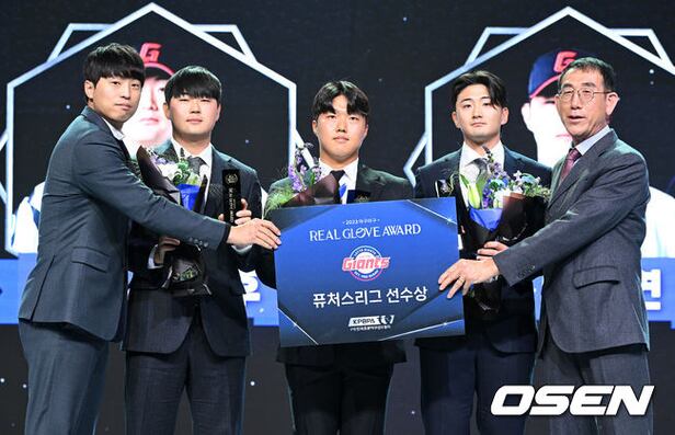 퓨처스리그 선수상을 수상한 롯 데 신윤후, 이태 연, 서동욱이 기념촬영을 하고 있다. 2023.12.01 /sunday@osen.co.kr