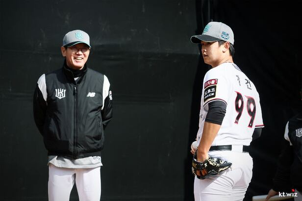 현장에서 만난 이강철 감독은 "강건이 1차 캠프 라이브피칭 때 가장 좋았다. 구속이 146, 147km가 나오고 RPM이 엄청나게 좋다. 너무 좋아졌다"라며 "1군 엔트리에 모든 선수를 다 데려갈 순 없다. 구성이 어려울 것 같다"라고 강건의 기량을 높이 평가했다.