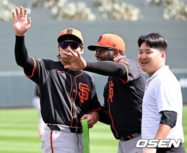 경깅에 앞서 샌프란시스코 자이언츠 이정후가 파블로 산도발과 이야기를 나누고 있다. 2024.03.05 /sunday@osen.co.kr