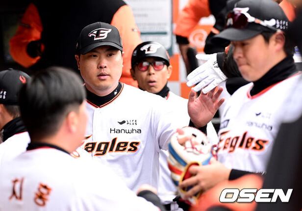 2회초 투구를 마친 한화 선발 류현진이 더그아웃에서 동료들과 인사를 나누고 있다. 2024.03.12 / dreamer@osen.co.kr