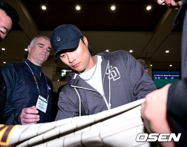 샌디에이고 김하성이 입국장에서 팬들에게 사인을 전하고 있다. 2024.03.15 / dreamer@osen.co.kr
